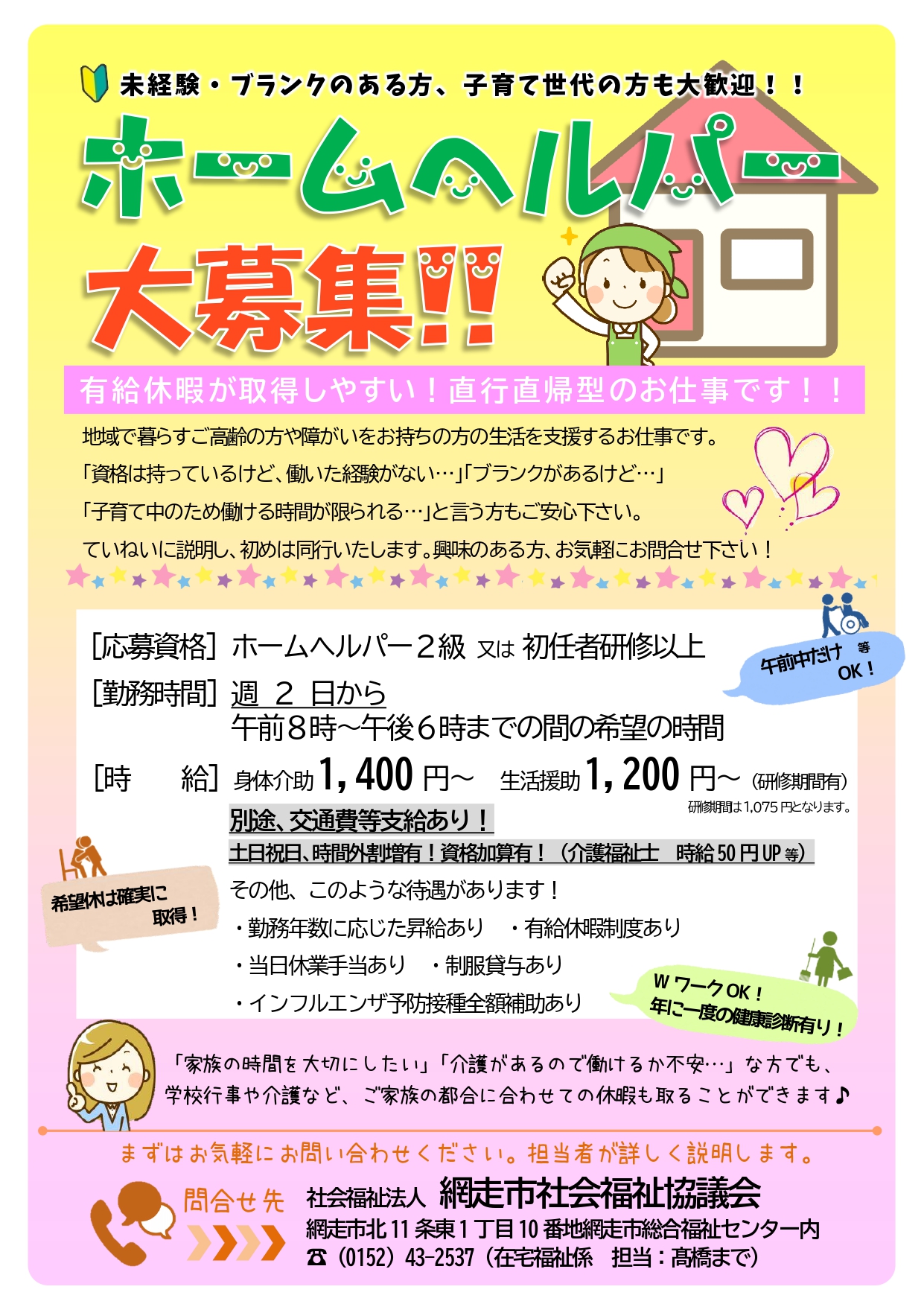 | 応募資格 | ホームヘルパー2級又は初任者研修以上 |
